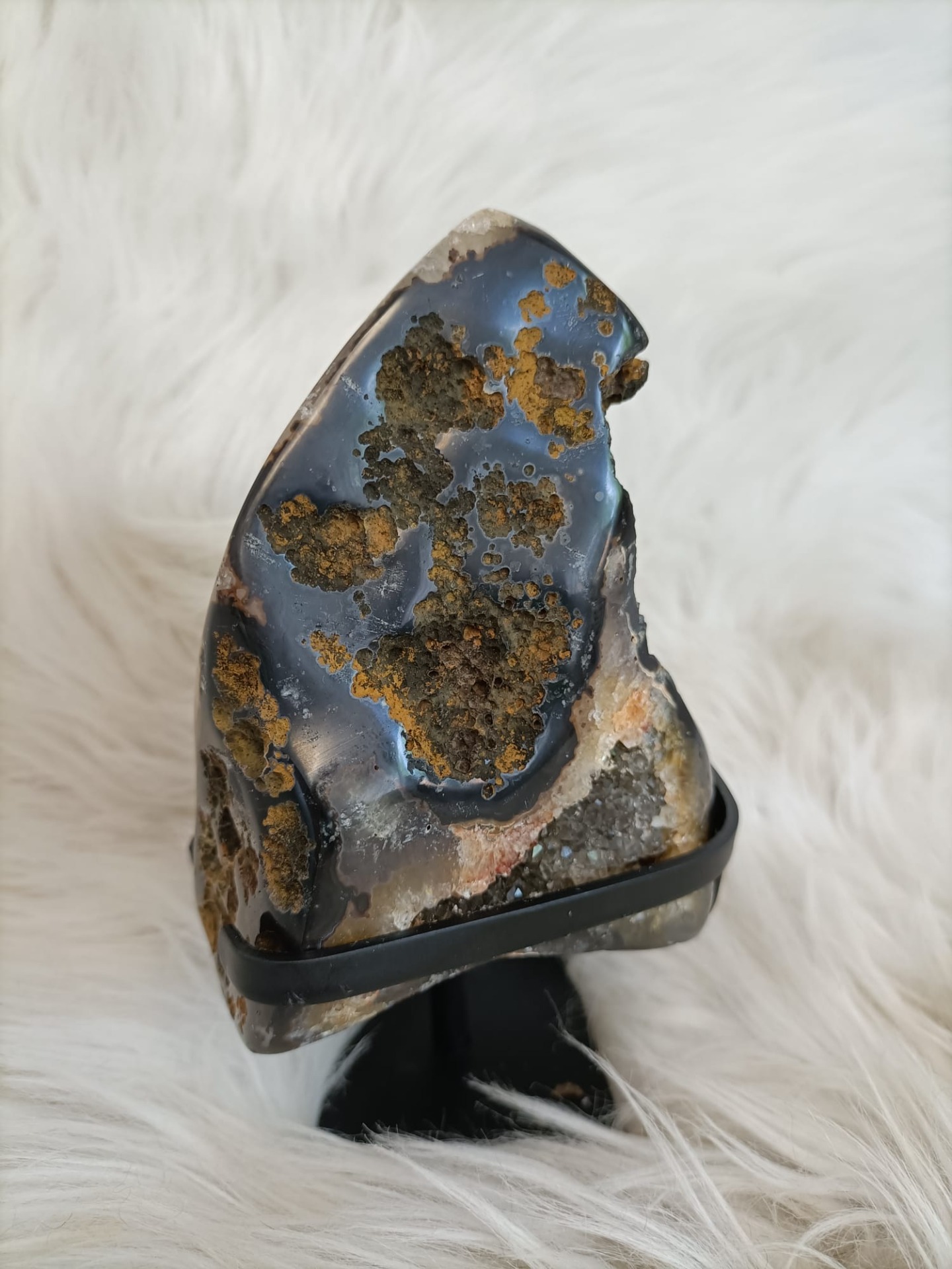 Deze zeldzame Iraì steen bevat een combinatie van natuurlijke citrien, amethist, bergkristal en agaat. Deze combinatie in natuurlijke vorm is erg bijzonder en is afkomstig uit Brazilië